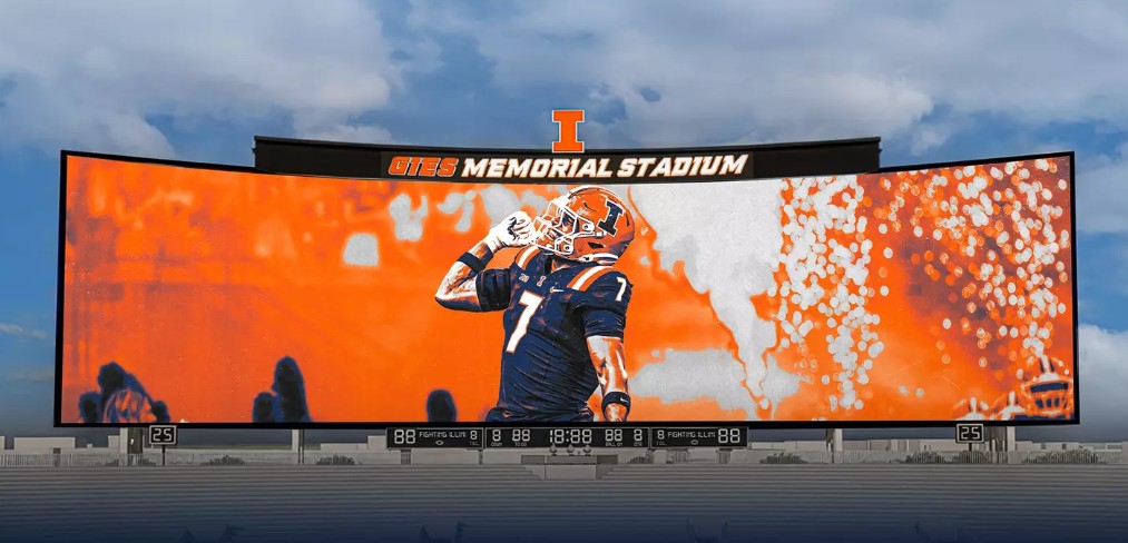 The Fighting Illini turned to Daktronics to design, manufacture and install the largest main video display in college football at Memorial Stadium, totaling 17,300+ square feet.